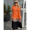 WILD ELEGANT - Erhalte Aufmerksamkeit durch kühne Schwarz-Orange Farbpaneele und wilde Leopardenmuster. Dieses Maxikleid verbindet kämpferischen Stil mit Eleganz und zieht Blicke auf Festivals, Dates oder Stadtabenteuern. Ein Statement-Stück für Rebellen und Trendsetter gleichermaßen.