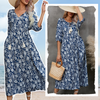 Pakket bestaat uit: 1 * Elegante lange jurk met bloemenprint en V-hals voor dames