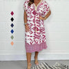 Bedrukte casual jurk met V-hals en franjes aan de korte mouwen